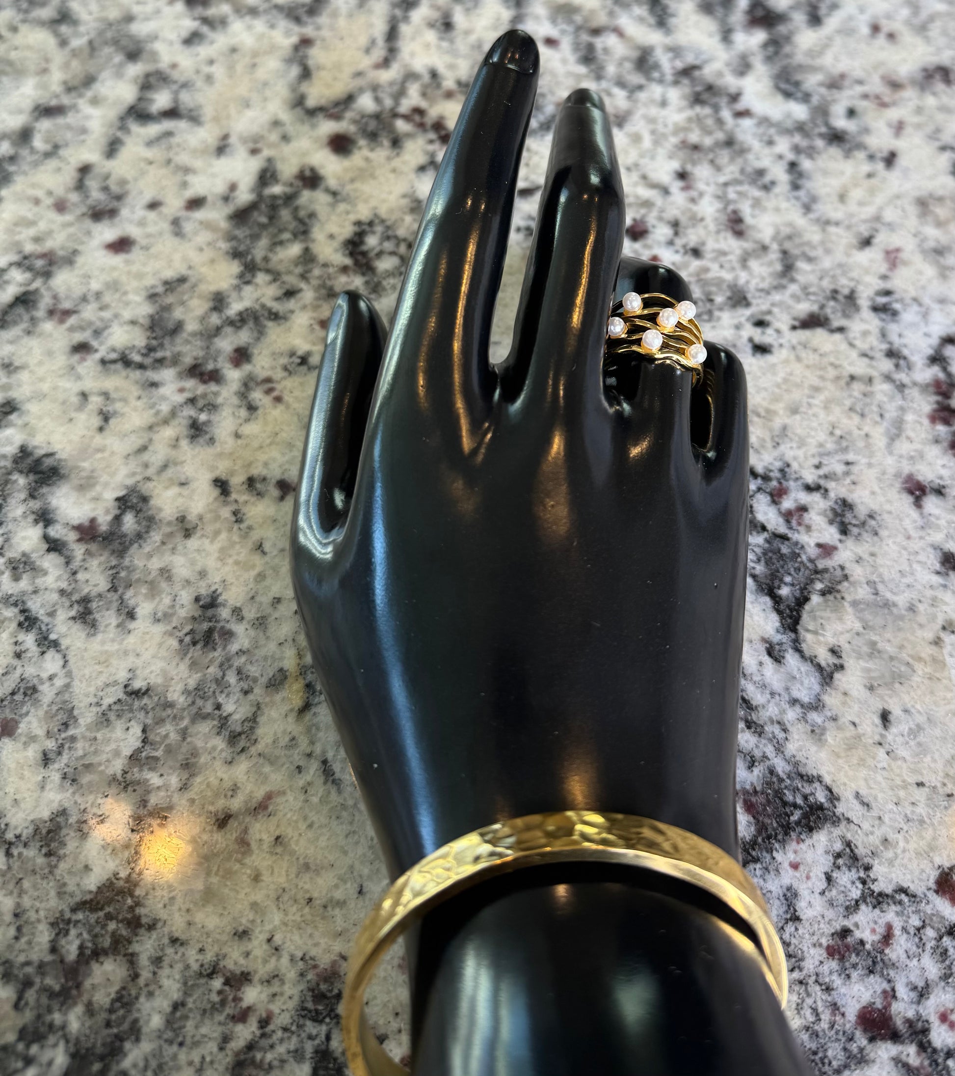 Delicate and timeless, the Pearl Blossom Ring adds a touch of elegance to any look. A subtle statement piece that effortlessly elevates your style.
